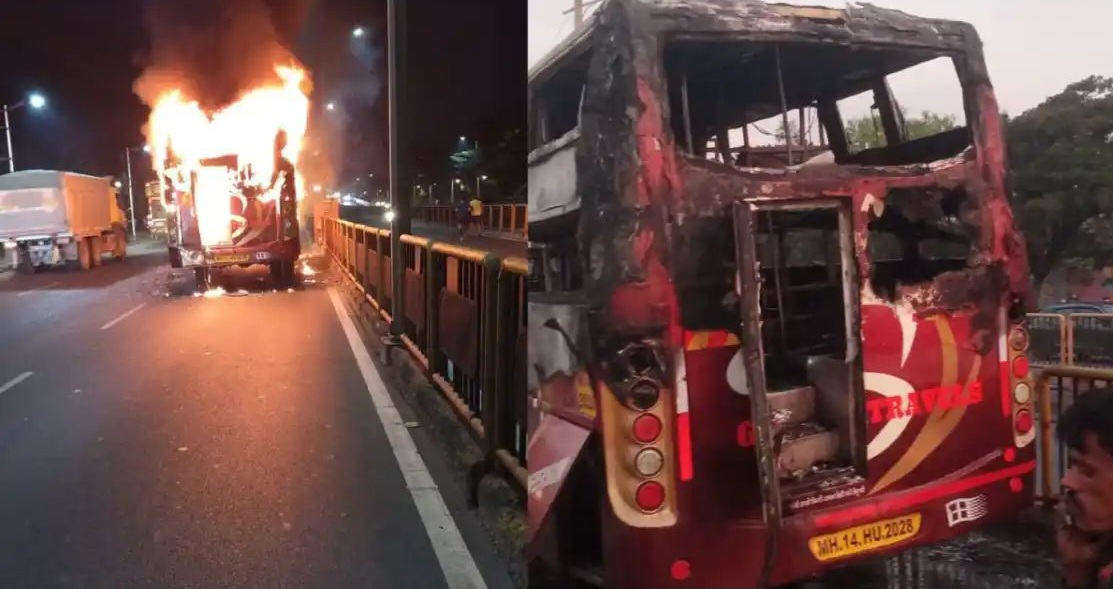 पिंपरी चिंचवडमध्ये खासगी बस जळून खाक; सुदैवाने कोणतीही जिवितहानी नाही