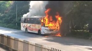 अचानक पेट घेतला. बस रस्त्याच्या बाजूला उभी करून दुरुस्तीचे काम सुरू होते त्यामुळे बसमधील सर्व प्रवासी सुरक्षित आहेत. चालकाने दाखवलेल्या प्रसंगावधामुळे मोठी दुर्घटना टळली.