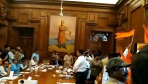 दरम्यान या संपूर्ण प्रकरणानंतर आता अखिल भारतीय विद्यार्थी परिषदेने आक्रमक पवित्रा घेतला आहे. विद्यापीठाचा निषेध करत जोरदार घोषणाबाजी केली. तसेच विद्यापीठातील हॉलमध्ये सुरू असणारी वरिष्ठ पदाधिकाऱ्यांची बैठकही या कार्यकर्त्यांनी उधळून लावली. इतकंच नाही तर काही काचांची आणि वस्तूंची तोडफोड देखील करण्यात आल्याची माहिती आता समोर येत आहे.