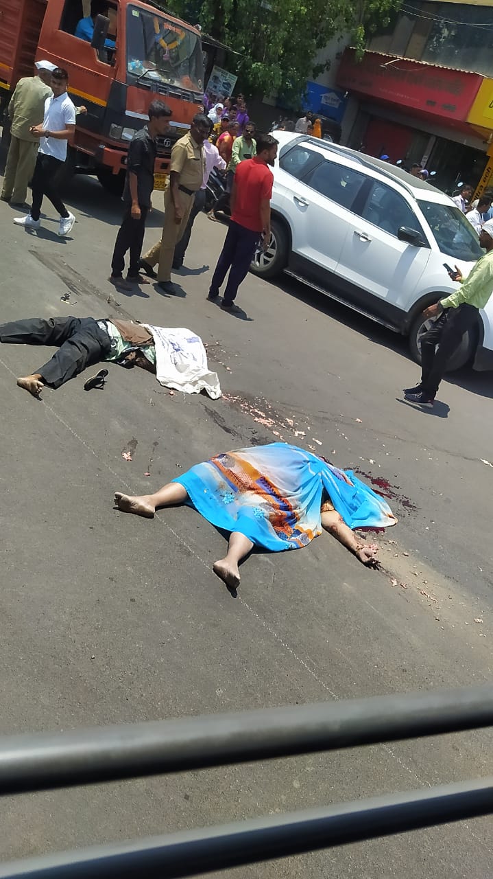 वाघोली :डंपरच्या धडकेने दुचाकीवरील दाम्पत्य जागीच ठार झाल्याची घटना वाघोलीत केसनंद फाट्यावर दुपारी एक वाजण्याच्या सुमारास घडली. अपघात एवढा भीषण होता की डंपरने काही मीटर अंतर दुचाकीसह त्यांना फरफटत नेले. डोक्यावरून चाक गेल्याने दोघांचा जागीच मृत्यू झाला. या अपघातामुळे मोठ्या प्रमाणावर वाहतूक कोंडी झाली. अशोक मार्तंड काळे व वर्षा अशोक काळे ( रा. कसबा पेठ, पुणे ) असे अपघातात मृत्यूमुखी पडलेल्या दाम्पत्याचे नाव आहे. तर डंपर चालक भास्कर पंढरीनाथ कंद ( वय 51, रा लोणीकंद ) हा अपघातानंतर डंपर सोडून पळून गेला. हा डंपर स्वप्नील भूमकर यांच्या मालकीचा आहे. पोलिसानी दिलेल्या माहितीनुसार काळे दाम्पत्य हे राहू तालुक्यातील वाळकी या गावी शेतीच्या कामासाठी निघाले होते. केसनंद फाट्यावर ते चौकातून राहू रोडकडे वळत होते. पाठीमागून आलेल्या भरघाव डंपरने दुचाकीला धडक देत पुढे फरफटत नेले. दुचाकीसह दाम्पत्य डंपर मध्ये अडकले होते.