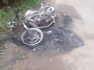 डीएसके शोरुम रोड साडेसतरानळी येथे दुचाकी जळलेल्या अवस्थेत