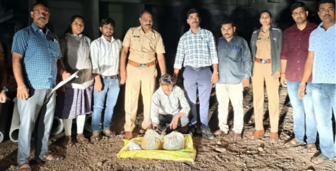 त्यानुसार पोलिसांनी महाड नाका परिसरात पाळत ठेवली. रात्री सव्वाआठच्या सुमारास महाड नाक्यावरील महाडला जाणा-या रस्त्याच्या डाव्या बाजूला संजयनगर कडे जाणा-या फाट्याजवळील अर्धवट बांधकाम सुरू असलेल्या इमारतीसमोर अजय गुमाणे आढळला. त्याच्याजवळील पोत्यात साडेचार किलो उग्र वास असलेला गांजा आढळून आला पोलिसांनी त्यास गुंगीकारक औषधी द्रव्य व मनोव्यापारावर परिणाम करणारे पदार्थ अधिनियम कायद्याअंतर्गत गुन्हा दाखल करून अटक केली.