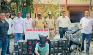 पुणे : सार्वजनिक ठिकाणी लावलेल्या सीसीटीव्ही कॅमेर्यांचे यु पी एस व बॅटरीज चोरी करुन नेणार्या सराईत गुन्हेगाराला संत तुकारामनगर पोलिसांनी पकडून त्याच्याकडून ५ लाख ९८ हजार रुपयांचा माल हस्तगत केला आहे.