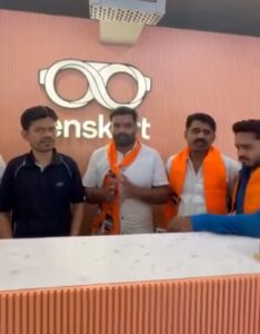 व त्या क्तव्यावर आपल्या धंद्यावर काय परिणाम होईल व हिंदू समाज किती ताकतीचा आहे. हे दाखवून देण्याची वेळ पुढील काळात येऊ नये अशी मागणी लेन्स कार्ट कंपनी व व्यवस्थापकीय संचालक व सीईओ यांनी लक्षात घ्यावं व पुढील काळात चुकीचे नियम व चुकीच्या अटी घालून कर्मचाऱ्यांवर व समाजावर या गोष्टीचा काय परिणाम होईल याची काळजी कंपनी घ्यावी व जे काही नुकसान होईल त्या सर्वस्वी जबाबदार हे स्वतः पियुष बंसल सीईओ लेन्स स्कार्ट हेच असतील अशी मागणी आम्ही हवेली तालुक्यातून मनसे त्यावेळी उपस्थित मनसे पुणे जिल्हा उपाध्यक्ष रामचंद्र काका गायकवाड, चेतन चौधरी मनसे हवेली तालुका अध्यक्ष,संदीप चोरघडे विद्यार्थी अध्यक्ष मनसे हवेली तालुका उपाध्यक्ष अनिरुद्ध मराठे व सर्व पदाधिकारी उपस्थित होते.